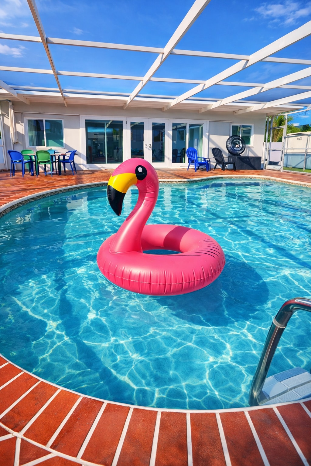 Oażi tropikali unika b'żewġt ikmamar tas-sodda li jinsabu ħdejn il-baħar, Tiki Hut u tiki bar! LGBTQIA + merħba! Hablo Español. Post fejn toqgħod għall-pets. Post fejn toqgħod tropikali ta' Airbnb! Il-pixxina PRIVATA msaħħna b' stil ta' resort uniku tagħna b' kaskati u xtieli tax-xemx doppji, / f' sodod tal-pixxina, imdawra b' pajsaġġ lussuż, hija oażi privata. 3 kmamar tas-sodda, b' 3 ikmamar tas-sodda, b' 3 ikmamar tas-sodda Kbira b' 2 sodod queen Billejl l-ispazju ta' barra jieħu l-ħajja grazzi għad-dawl tal-pixxina u tal-ġnien! Mhux se trid tħalli d-dar!