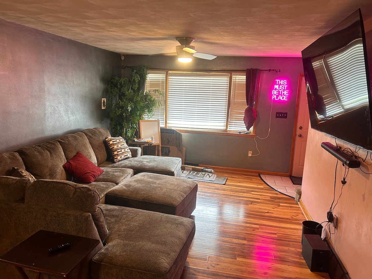 Cozy 3BR, 3BA home in Clarksburg 🏡 Main floor offers Full kitchen, Dining Space , Living Space w/ Couch and TV, Full Bathroom (Shower) and Bedroom w/ TV. (no stairs needed ♿️). Upstairs has 2nd full bath/tub + extra fridge + bedroom. Basement includes laundry room, bedroom w/TV & full bath / tub. Kid-friendly w/toys, covered outdoor picnic area. 2 parking spots + street parking. Just 5 mi from I-79 & shopping on Emily Dr. Fireplaces for looks only!