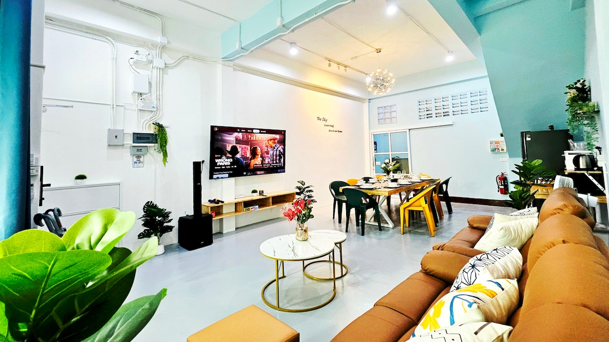 Terrazzin fiċ-Ċentru | post fejn toqgħod eleganti fil-qalba tal-belt ta' Hatyai. Irrilassa u erġa' strieħ f' din id-dar bi stil ta' California Toskan ġewwa l-komunità privata ta' Patio Village. Matul is-Suq ta' Lejl ta' Greenway, 6 minuti bil-mixi biss sal-Festival Ċentrali u qrib ħafna attrazzjonijiet lokali. ✔️4 brms 2.5 bths(+ banju ewlieni) Televixin Intelliġenti ✔️50" ✔️Wifi ta' 500mps ✔️Projettur għal-Lejl tal-Films Parkeġġ ✔️Privat b' bieb awtomatiku tal-garaxx Magna tal-Ħasil/Dryer ✔️Ġdida ✔️7-11 u KFC ftit minuti mixi Gwardjan tas-sigurtà uCCTV ✔️24 siegħa kuljum