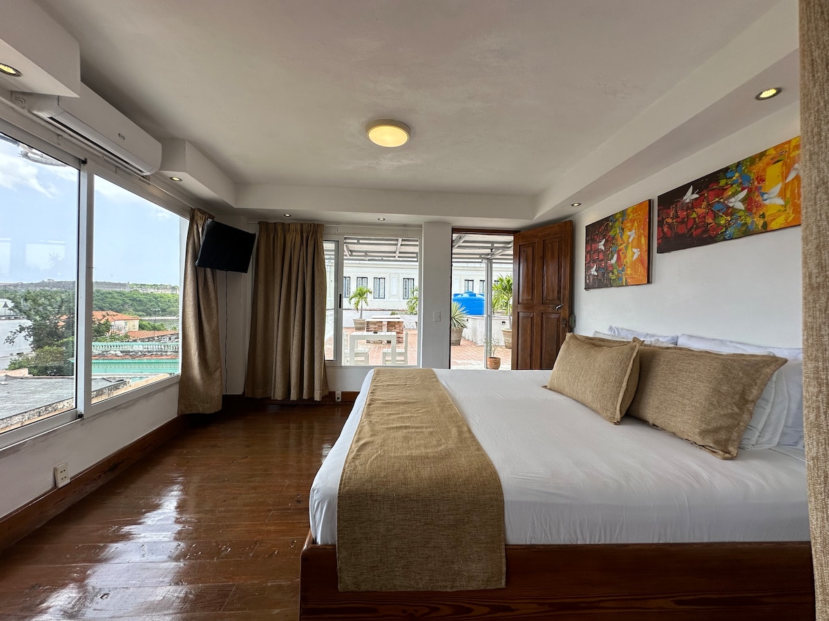 Is-Suite Penthouse b 'veduta straordinarja ta' 270° tinsab fil-qalba tal-belt antika storika ta' Havana fl-aħħar tal-boulevard magħruf sew Obispo (Bayside) u l-Park famuż "Plaza de Armas" eżatt ħdejn il-Lukanda lussuża tradizzjonali Santa Isabel. Iċċekkja wkoll l-unità doppja ta 'bieb ġdida bħala offerta speċjali https://www.airbnb.de/rooms/37442714?adults=1&guests=1&s=13&unique_share_id=32d11d71-7b60-49d9-9472-adbbd5 Se jkollok impressjoni ta 'għajxien u stil ta' ħajja awtentiċi kubani.
