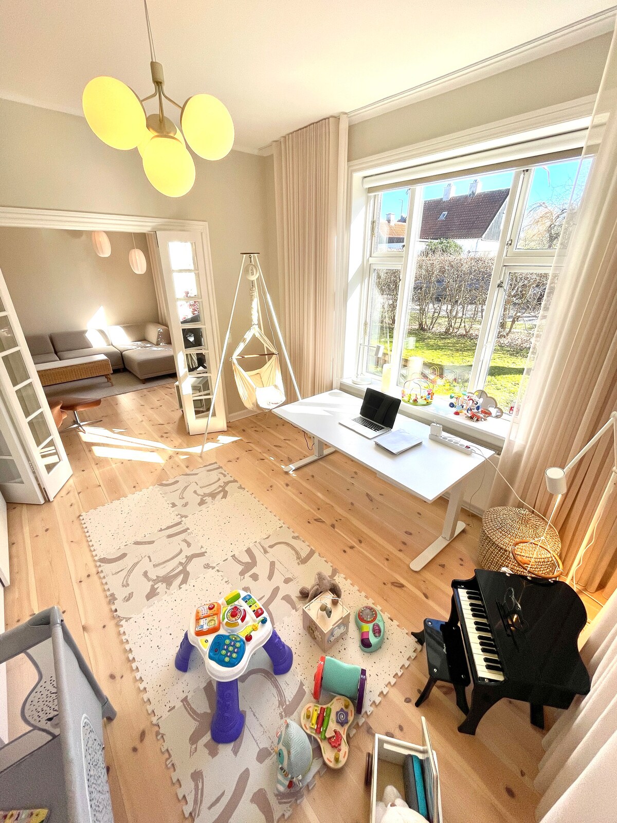 Merħba fl-appartament spazjuż u mill-isbaħ tagħna! Din id-dar sabiħa hija 147m2 fis-sular t'isfel fi ħdan Dar Vittorjana sabiħa mill-1894, li tiftaħ saqaf għoli. Ġnien privat kbir xemxi b' terrazzin tal-injam u siġġijiet u mejda. Se jogħġbok il-post fejn tinsab, ftit passi jew ftit dawriet bir-rota 'l bogħod mill-ħwienet, kafetteriji, l-Experimentarium u l-istazzjon tal-ferrovija biex tkun tista' tasal malajr fiċ-ċentru ta' Copenhagen.