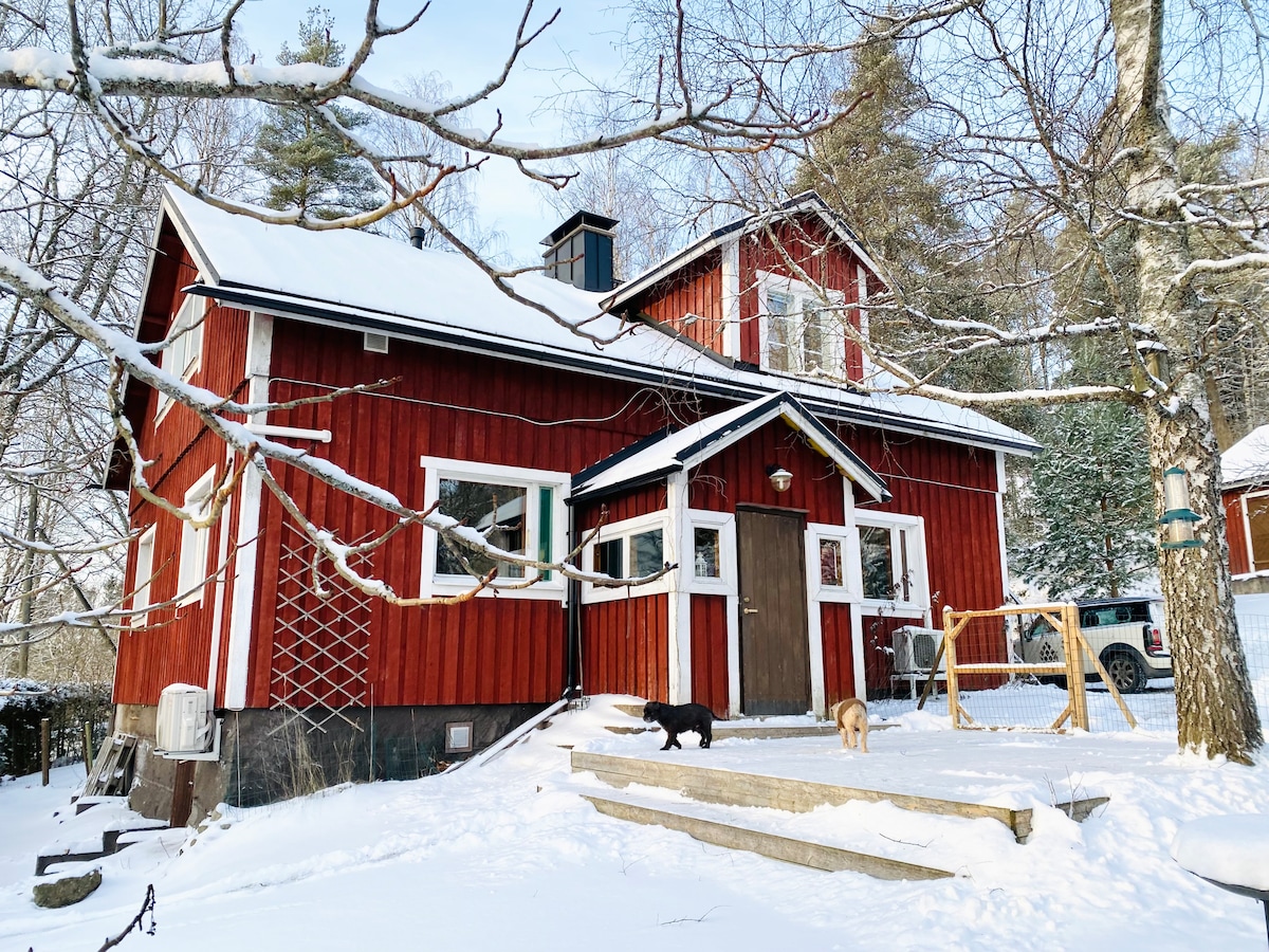 Kabina urbana/mini house eleganti madwar 45 m2 b 'veduta tal-lag mingħajr xkiel. Hawnhekk tista 'tħossok qisek qiegħed f' cottage, anke jekk iċ-ċentru ta' Ħelsinki u l-ajruport jinsabu inqas minn 20 km' il bogħod. Id-dar li ġiet rinnovata dan l-aħħar hija akkumpanjata minn żona komda ta 'bitħa mdawra b' xenarju mill-isbaħ! Għal tariffa addizzjonali, il-hot tub ta 'barra b' veduta mill-isbaħ tal-lag huwa disponibbli għall-użu. Erba 'adulti jistgħu jorqdu komdi fil-cottage, possibbilment aktar jekk tagħfas ftit.
