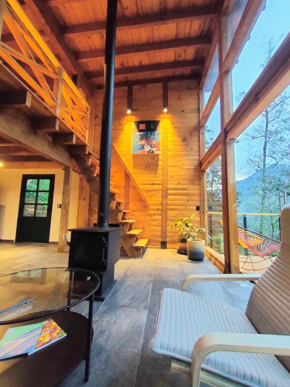 Ejja u skopri l-aktar kabina Boutique sabiħa fil-Park Nazzjonali ta 'Chico, arkitettura moderna fejn il-ħadida tal-mogħdija, l-injam u t-tajn mgħolli jingħaqdu, f' nofs foresta mimlija oyamels, ocotes u fawna selvaġġa. Post mimli kwiet u paċi li se jirrilassa s-sensi tiegħek u fejn bilqiegħda bil-lejl ħdejn il-fireplace u ftit tazzi tal-inbid se jagħmlu lejla romantika li ma tintesiex jew filgħodu tara x-xemx tiela 'flimkien fil-veduta inkredibbli tagħna se tagħmel iż-żjara tiegħek il-post ideali tiegħek