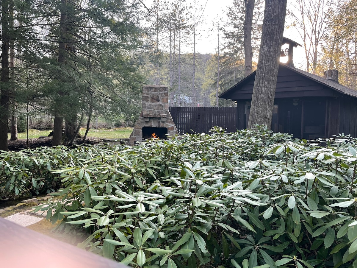 Aħrab għall-post privat tiegħek fil-qalba tal-Laurel Highlands—post fejn tista' tgħix avventura matul l-erba' staġuni. Gawdi l-iskiing, is-snowboarding, il-mixi fit-tul, ir-roti, il-kayaking, is-sajd, il-kaċċa u iktar. Il-post jinsab fuq proprjetà kbira bil-foresti u huwa ideali biex tieħu n-nifs, tistrieħ u terġa' tikkonnettja mal-ambjent. Ixrob il-kafè ta' filgħodu fil-gallarija jew irrilassa ħdejn in-nar taħt il-kwiekeb. Tmien mili biss 'il bogħod minn Seven Springs, sitt mili 'l bogħod minn Hidden Valley u mil u nofs 'il bogħod minn Laurel Hill State Park.