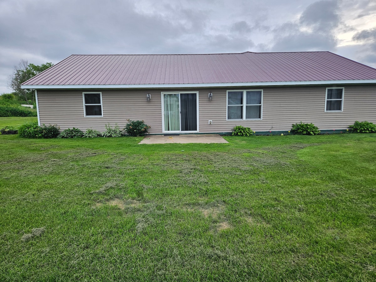 Arja friska tal-pajjiż. Veduta sabiħa. Cable TV. Wi-Fi. Hot Tub (mingħajr sustanzi kimiċi). Kċina mgħammra bi spazju wiesa'. Sufan sezzjonali b' postijiet fejn tistrieħ. Recliner. Fireplace tal-elettriku. Firepit fuq barra (ġib l-injam tiegħek stess). Magna tal-ħasil u dryer. Pass ta' 12-il pulzier fil-banju/doċċa. Din il-vaganza sabiħa hija marbuta mal-ħanut tan-negozju tal-familja. Kultant intellgħu l-karrijiet u kultant se nkunu qed naħdmu fil-ħanut. Storbju minimu. 30 Minuta 'l bogħod minn Eau Claire. Aħna ninsabu biss 25 minuta 'l bogħod minn żewġ lagi b' bajjiet.