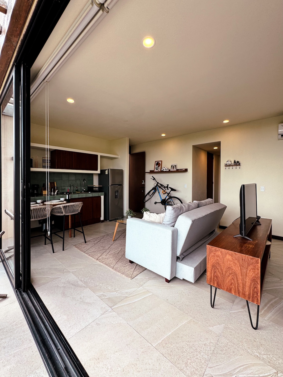 Déjate enamorar por este loft amplio y elegante en la mágica isla de Holbox, un refugio pensado para vivir momentos especiales en un ambiente privado y relajado. Loft de dos niveles, una terraza amueblada, un solárium con camastros y dos pérgolas de áreas comunes. Ubicado a solo dos cuadras de la playa y a diez minutos del centro de la isla. Te encuentras en un condominio de nueve departamentos, donde solamente comparten las áreas comunes.