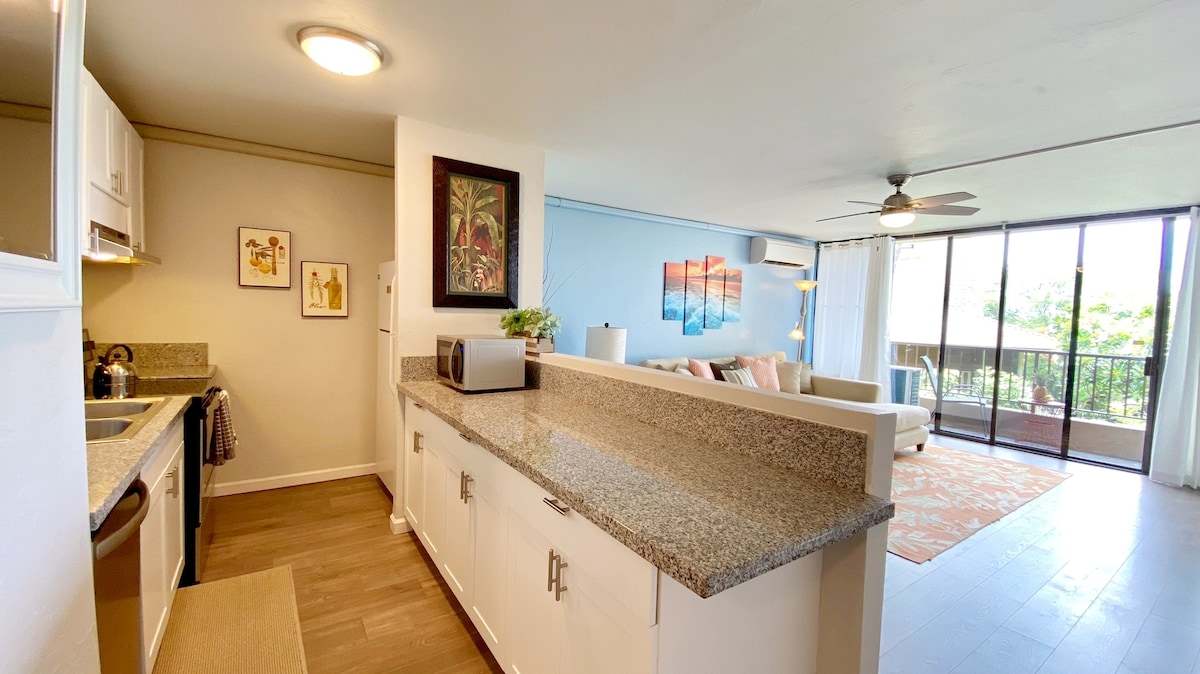 Appartament kondominjali li ġie rranġat dal-aħħar (Lulju 2025). Ideali għall-familji li jgawdu minn Kona - mgħammra b' tagħmir għall-bajja, xugamani, ġugarelli, boogie boards, siġġijiet tal-bajja u pack n play. Matul it-triq mill-oċean, f' Lyman' s Cove. Isma' l-ħsejjes tal-oċean mil-lanai tiegħek u tkun impressjonat/a bil-veduti mill-isbaħ mill-pixxina. Tinsab ftit minuti 'l bogħod mill-Bajja sabiħa ta' Magic Sands u mix-xiri. Gawdi l-arja kkundizzjonata ċentrali (A/C), it-televixin intelliġenti u żona mill-isbaħ għall-BBQ/pixxina biex tiggrillja u tirrilassa.