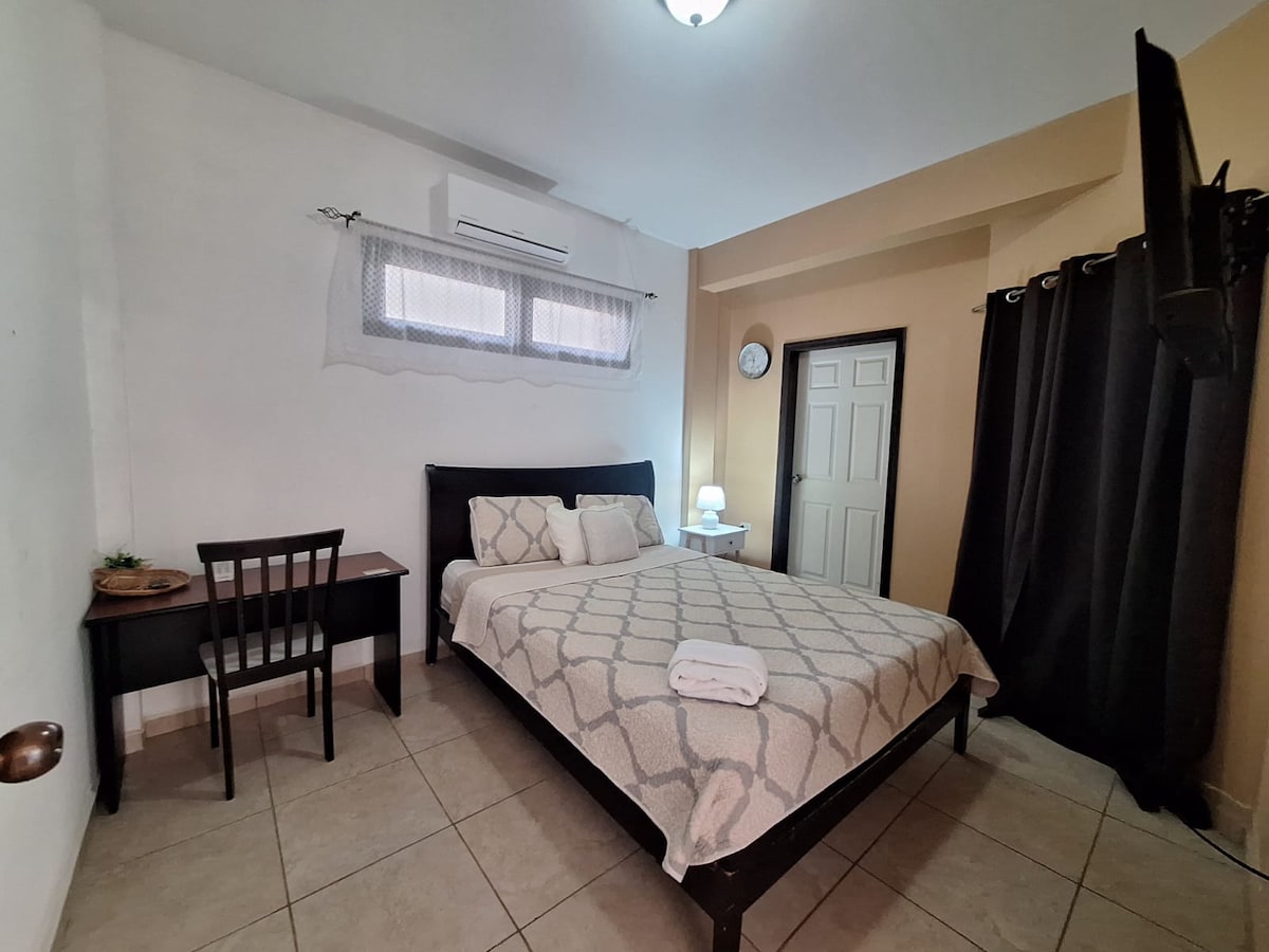 Apartamento en 2da. planta con acceso autónomo. 🚙 1 traslado gratis al aeropuerto a 15 minutos aprox. Acceso a la residencial mediante código QR. Seguridad privada, muro perimetral. Ambiente seguro y familiar Cuidamos el planeta con paneles solares generando energía eléctrica. Cerca Supermercado, farmacia, expreso americano, Denny’s, Starbucks, MegaMall, 🚙Baja tarifa de transporte local y nacional en camioneta si lo necesitas. 🚍Transporte público cerca 🚸 Area recreativa Visítanos