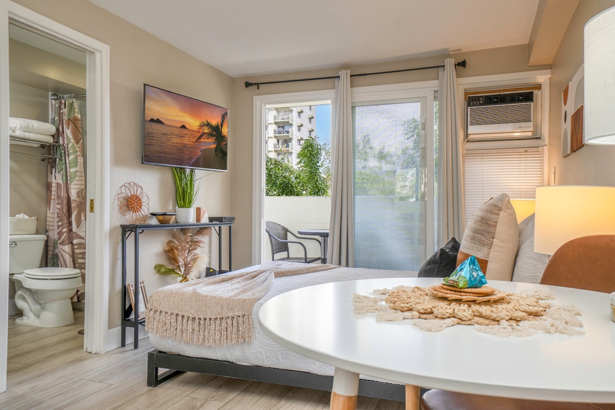 This modern studio was personally renovated with the help of my closest friends and family, and our “ideal day in Honolulu” in mind. We prioritized quality, function and comfort. - Unbeatable location! Steps to Waikiki, Ala Moana Beach, and Ala Moana Mall - Newly renovated and designed - High speed internet + WIFI (for those living that remote life!) - Parking available ($32/night - this is cheap for Waikiki) - Laundry room right next to the unit (accessible via app).