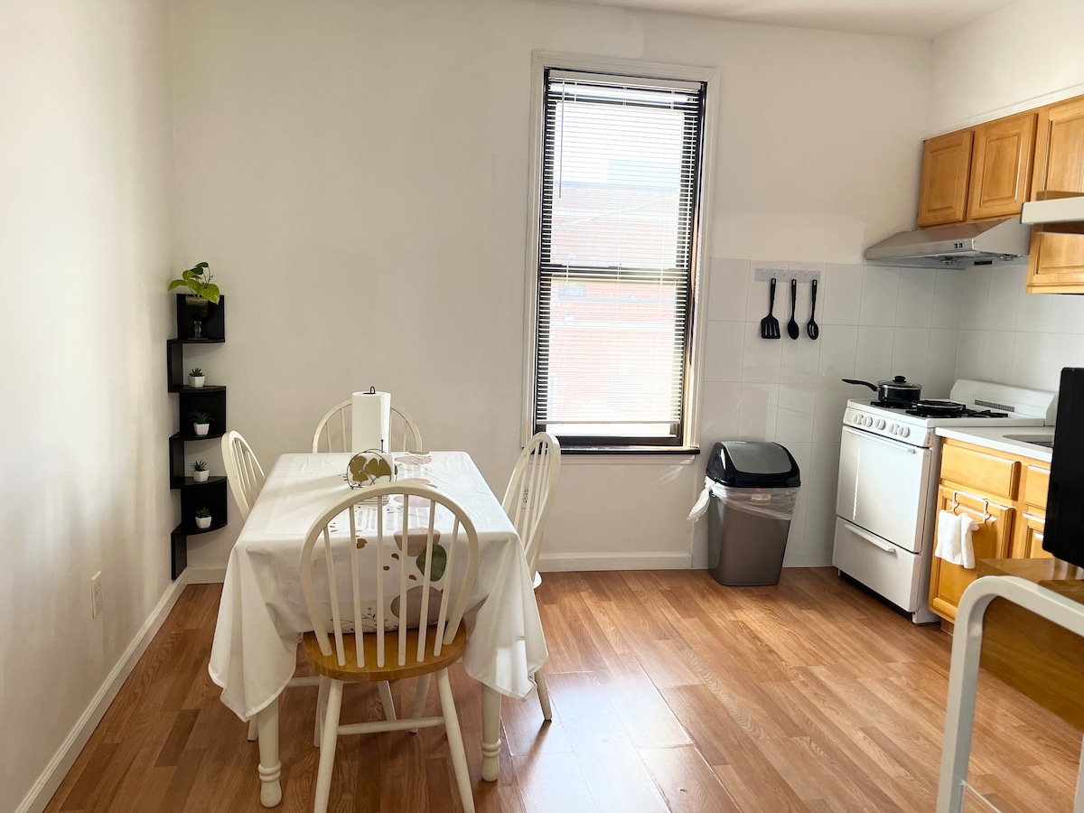 Spazjuż u Sabiħ f' appartament mill-isbaħ ta' Woodhaven, Queens. Gawdi minn viċinat storiku u kwiet, 30 minuta biss 'il bogħod minn Manhattan, 15-il minuta 'l bogħod minn JFK/LGA, 5 minuti 'l bogħod minn Forest Park, 15-il minuta 'l bogħod minn US Open/Mets, 10 minuti 'l bogħod mill-Każinò u 30 minuta 'l bogħod minn Rockaway Beach. Nofs blokka għall-ferrovija, il-karozzi tal-linja, ir-ristoranti u l-ħwienet ta' J. Għandha kċina moderna b'tagħmir tal-istainless steel, kamra tal-banju, art tal-injam, saqaf għoli, WiFi, AC, TV, veranda sabiħa u parkeġġ bla ħlas fit-triq. Aħna nilqgħu pets żgħar!