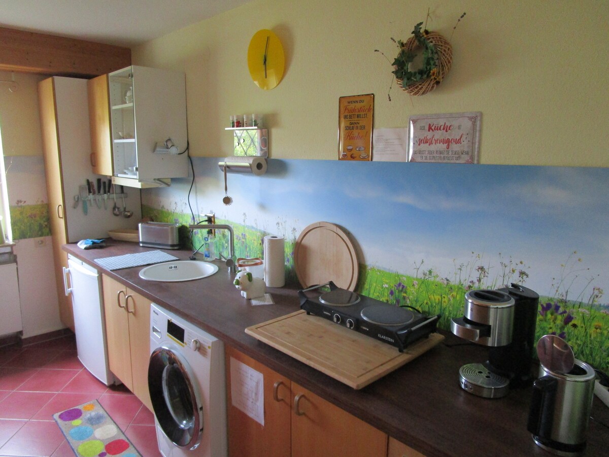 Hi! Aħna Steffi u Noé, irranġajna kompletament l-agrituriżmu tagħna u ħejjejnaha b' karattru speċjali. Araha għalik innifsek fl-appartament tas-sular t' isfel! Mur fuq vaganza fil-Foresta l-Iswed unika! Mixjiet fit-tul, navigazzjoni fil-mogħdija tar-roti tad-Danubju, skiing, jew sempliċiment irrilassa fil-ġnien ta' 1000 m2 - l-akkomodazzjoni f' dan il-post toffrilek dan kollu. Qed nistennewha bil-ħerqa!