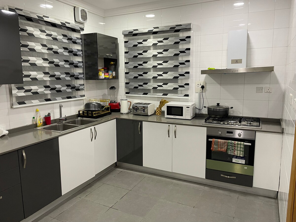Esperjenza l-lussu f' dan l-appartament eleganti bi 3 ikmamar tas-sodda b' kmamar tal-banju ensuite u interjuri eleganti. 5 minuti biss mill-Ajruport ta' Lagos u 3 minuti mill-Mall tal-Belt ta' Ikeja. Gawdi minn wifi veloċi tal-5G, smart TV, AC, kċina sħiħa, magna tal-ħasil/dryer u enerġija 24 siegħa kuljum f' propjetà magħluqa b' sigurtà uniformi. Ideali għall-familji, għall-gruppi jew għall-vjaġġaturi għax-xogħol. Self checkin u mmaniġġjar professjonali għal żjara bla xkiel.