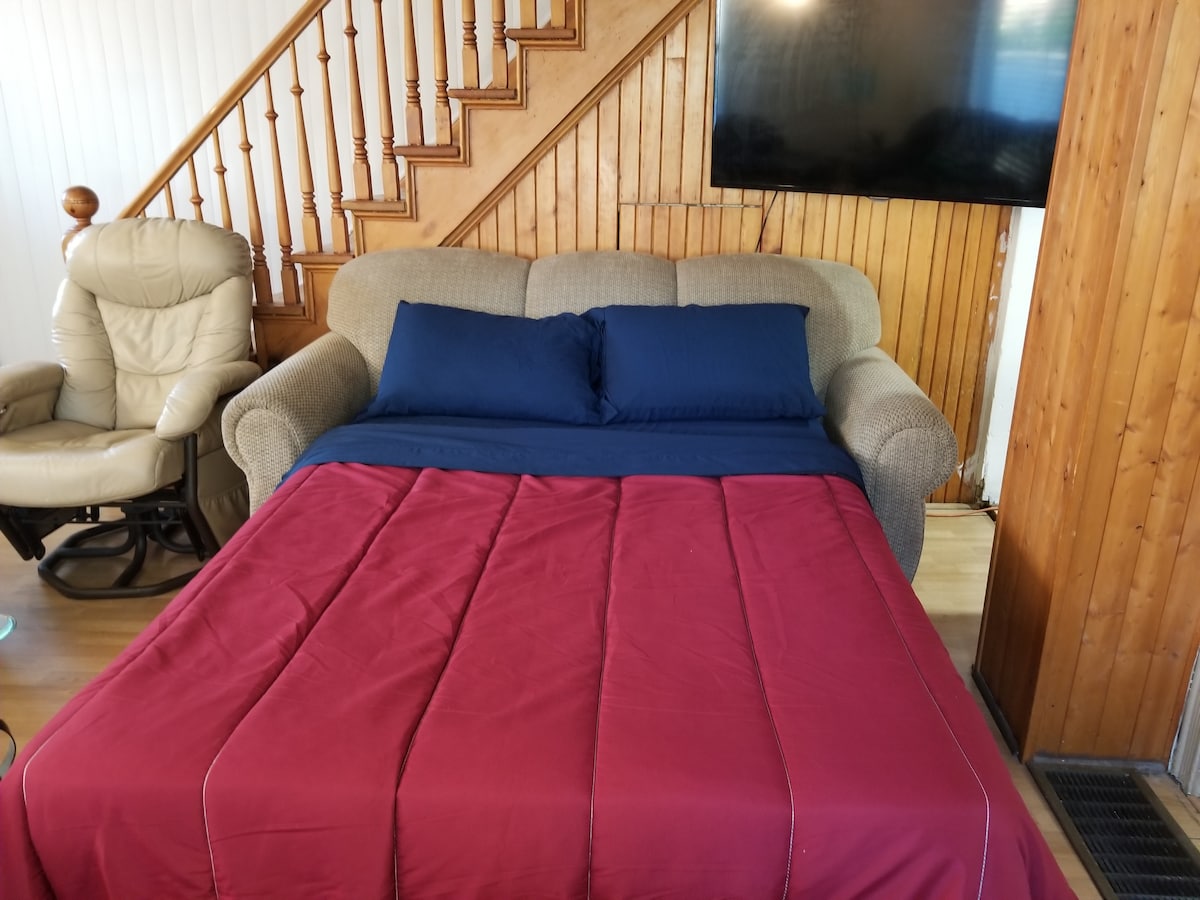 Skopri l-appartament imżejjen sabiħ u komdu tagħna ġewwa Hull, ftit minuti 'l bogħod miċ-ċentru ta' Ottawa u l-Park ta' Gatineau. Is-sular t' isfel imdawwal u komdu huwa aċċessat minn daħla privata b' tastiera diġitali sempliċi. Aħna noffru parkeġġ privat, saqqu tal-ogħla kwalità, kafè, Netflix, terrazzin, doċċa spazjuża tax-xita. Gawdi mill-faċilitajiet konvenjenti tal-ħasil tal-ħwejjeġ u tal-kċina. Każinò, ristoranti, ċentri kummerċjali 'l bogħod mill-mixi. Iż-żjara perfetta tiegħek qed tistenna! Għal 3-4 klijenti, ara l-listing 2BR tagħna.