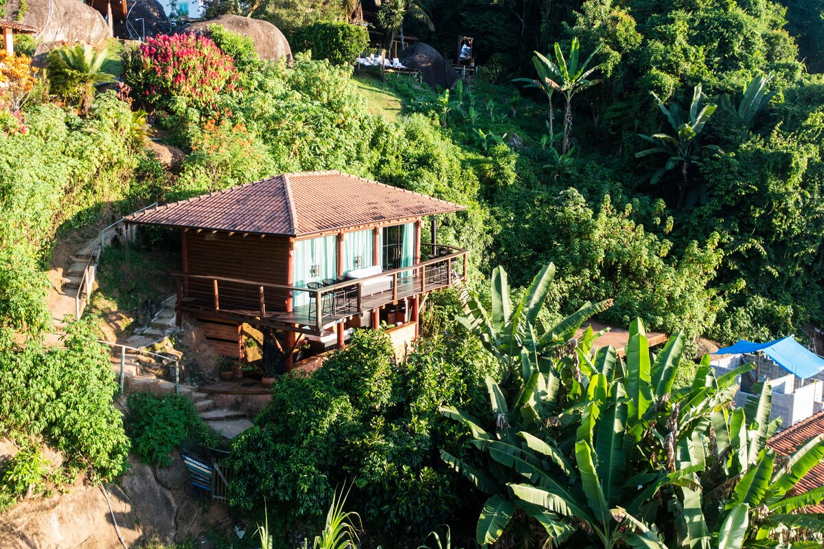 Dar ġdida fjamanta f 'post kwiet u paradisiakali b' privatezza totali, imdaħħla fil-Foresta ħdejn Parque da Bocaina f 'Paraty: + Veduta panoramika tal-Wied u l-Foresta + 2 kmamar komdi (suites) għal mhux iktar minn 4 klijenti + Pixxina infinity imsaħħna + 100 Mbps Internet b 'Veloċità Għolja + Arja kkundizzjonata sħuna u kiesħa + Kaskati Privati + Kċina Sħiħa + Żona Gourmet bil-Barbecue u Forn tal-Injam + aċċess 100% pavimentat, 10 km 'il bogħod miċ-ċentru ta' Paraty