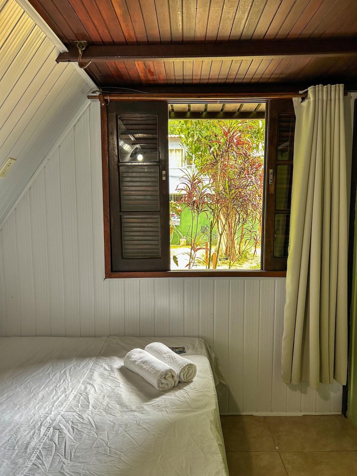 Treetop Chalet toffri akkomodazzjoni eleganti u tradizzjonali, li tinsab ġewwa l-foresta tropikali sabiħa tal-Atlantiku f' Araçatiba, Ilha Grande. Dan il-post privat u maqtugħ huwa 150m mill-eqreb bajja (Praia da Cachoeira). Huwa kompletament awtonomu, bi kċina kompluta, kamra tal-banju privata u gverta b 'veduta impressjonanti tas-siġar lejn il-baħar. ŻOMM F' MOĦĦOK: Dil-propjetà (inklużi x-chalet u d-dar ewlenija) għadha kemm ġiet iddekorata mill-ġdid.