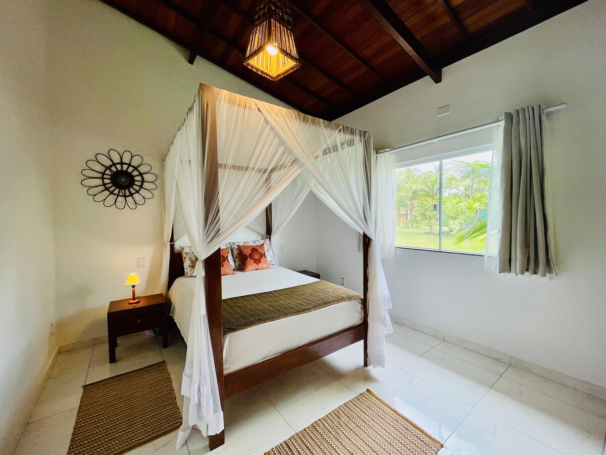 Irrilassa f 'dan l-ispazju kwiet, eleganti u eleganti. Inqas minn ħames minuti mixi mill-bajja ta 'Sargi u erba' kilometri biss mir-raħal ta' Serra Grande, reġjun ta' bajjiet paradisiacal bejn Ilheus u Itacaré! Spazju ideali għal mhux iktar minn tliet persuni.