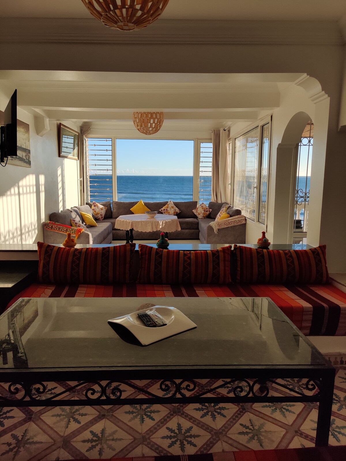 Dan l-appartament b' veduta tal-oċean li jinsab ġewwa Taghazout huwa ideali għas-surfers u l-familji. Għandha kamra tas-sodda doppja b' aċċess dirett għall-kamra tal-banju, kamra b' żewġ sodod u kamra oħra bi tliet sodod. Iż-żewġ kmamar tas-salott joffru kemm rilassament kif ukoll stil: wieħed b' TV b' dekor tradizzjonali Berber, u ieħor b' sufan sodod għall-irqad u veduti tal-oċean. B' kamra tal-banju oħra, kċina mgħammra b' kollox u gallarija, dan l-appartament joffri l-affarijiet essenzjali kollha għal ħarba rilassanti mal-kosta.