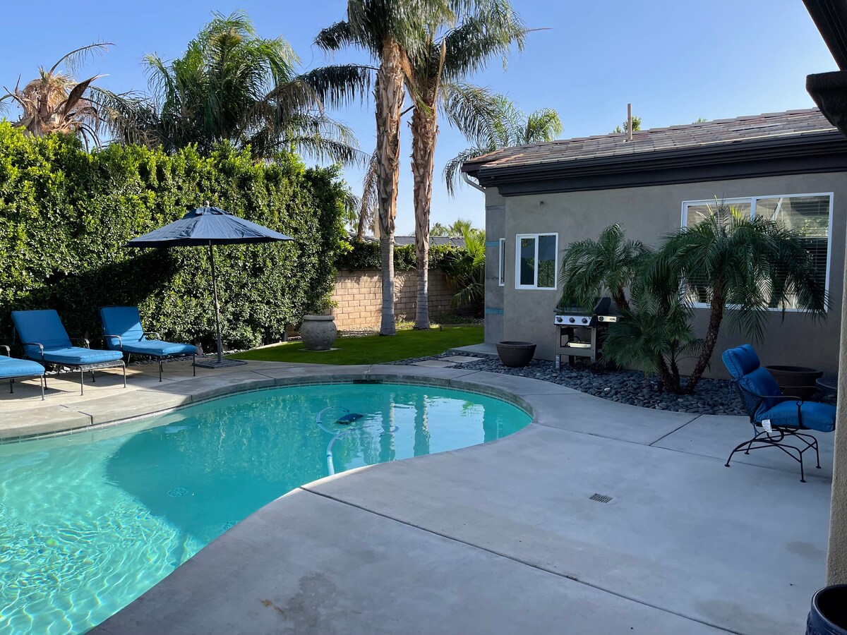 Quiet retreat in Palm Desert 5 min from El Paseo shops and dining, convenient to Palm Springs and Indian Wells. Updated suite with 1 bedroom, bath and living room/kitchenette. Private backyard with outdoor kitchen stove, sink and BBQ. Pool and hot tub are for your exclusive use. Safe walkable neighborhood. Close to best Coachella Valley golf and tennis. Primary renter must be 25 yrs old and provide a gov. I.D. per STR rules.Self check in available after 7pm. Dog friendly, 420 and gay friendly.