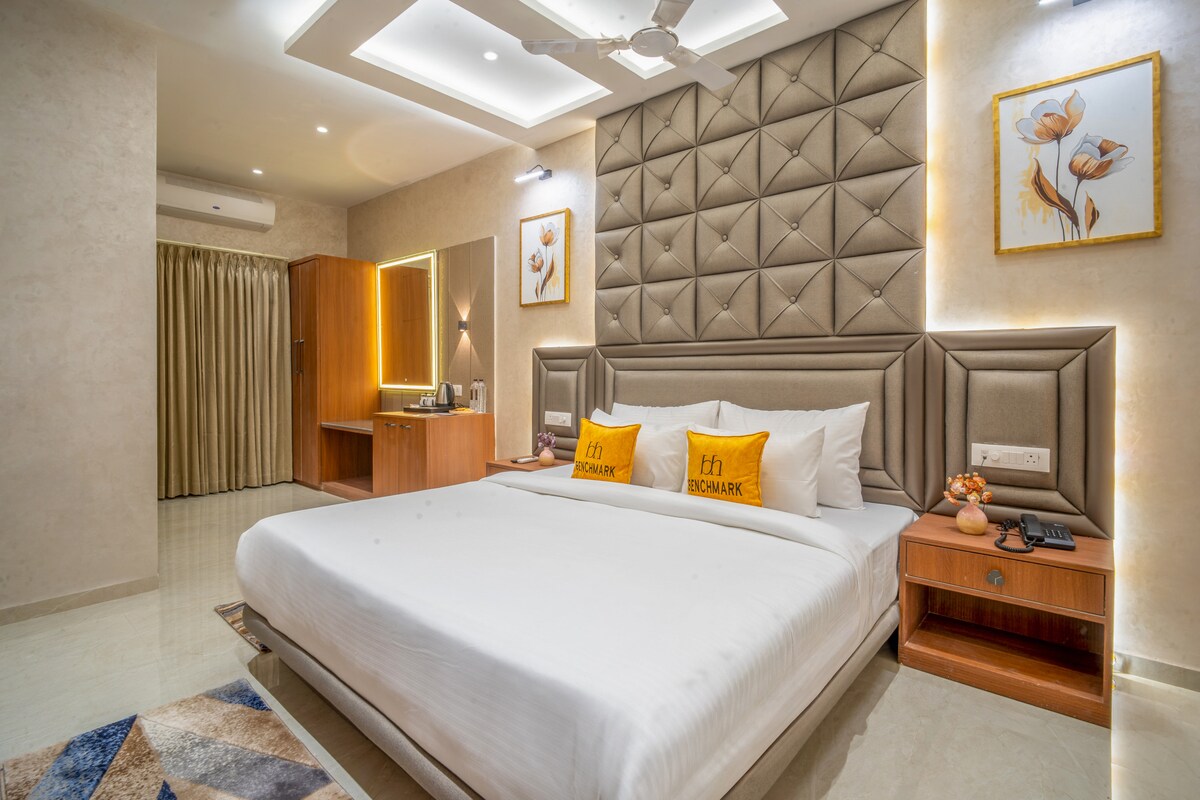 Oqgħod ġewwa Benchmark Residences, post stilizzat fejn tistrieħ fil-qalba ta' Indore. Iddisinjati għall-kumdità u l-konvenjenza, gawdi minn kmamar spazjużi bl-arja kkundizzjonata, WiFi b'veloċità għolja, smart TV u kmamar tal-banju privati mingħajr tebgħa. Perfett għal vjaġġi tax-xogħol, żjarat tal-familja jew vjaġġi qosra, tinsab ftit minuti 'l bogħod minn ċentri kummerċjali ewlenin, ristoranti u swieq. Gawdi minn servizz ta' livell ta' lukanda fil-kumdità u l-privatezza ta' residenza moderna.