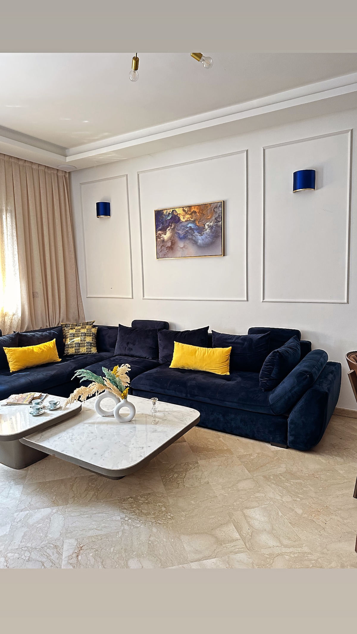 Dan id-duplex mill-aqwa ta' 120 m2 jinsab idealment 5 minuti 'l bogħod mill-bajja, 5 minuti' l bogħod mis-souk, 10 minuti' l bogħod mis-supermarkets u 400 metru biss' il bogħod minn Avenue Hassan II. Ir-residenza hija nadifa, kwieta u sigura u l-appartament għandu l-kumditajiet kollha li teħtieġ għal żjara komda. L-appartament jitnaddaf u jiġi diżinfettat qabel kull wasla.