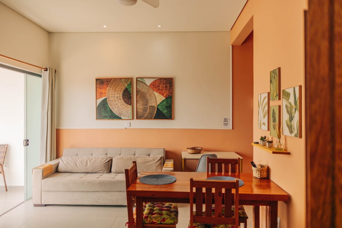 Gawdi l-maġija ta' Itacaré f' dan l-appartament sabiħ li jinsab fuq il-baħar famuż tal-belt, b' veduta spettakolari tax-xmara. Ideali għal dawk li qed ifittxu esperjenza rilassanti u awtentika, il-post jgħaqqad il-kumdità u n-natura fl-aħjar tiegħu. B' dekorazzjoni moderna u komda, dan l-appartament għandu dak kollu li għandek bżonn biex tagħmel iż-żjara tiegħek perfetta: kċina mgħammra b' kollox, Wi-Fi b' veloċità għolja u terrazzin kbir minn fejn tista' tgawdi l-kwiet tax-xmara u s-sbuħija por tagħmel hekk
