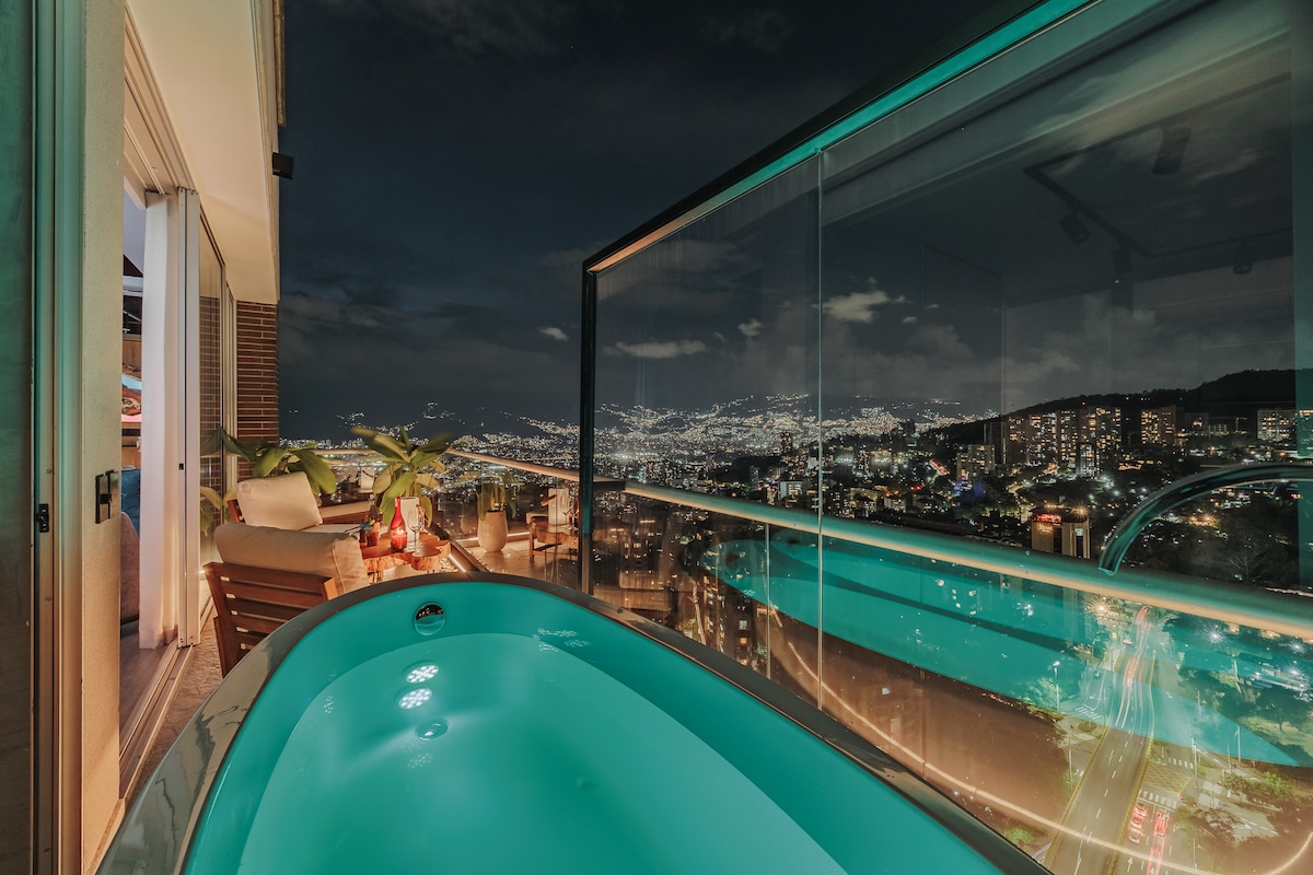 Se tkun f' Jacuzzi privat fis-sema!!! , El Poblado, 300 MBPS Internet, HD TV, parkeġġ bla ħlas, post tajjeb fejn taħdem REmotel u dawk li jixtiequ jgawdu l-btajjel tagħhom, se tkun biss 7 minuti bogħod minn UBER sa Provenza. Id-distanza bil-mixi ssib stazzjon tal-ferrovija. Ċentri kummerċjali ta' Oviedo u Santa Fe, ħanut tal-merċa 24 siegħa kuljum u ATM fil-qrib, Building has Gym, CoWorking area, Breakfast (Mhux obbligatorja). L-aħjar post fejn toqgħod ġewwa Medellin. Jacuzzi u terrazzin privati uniċi MEDELLÍN! RNT253422