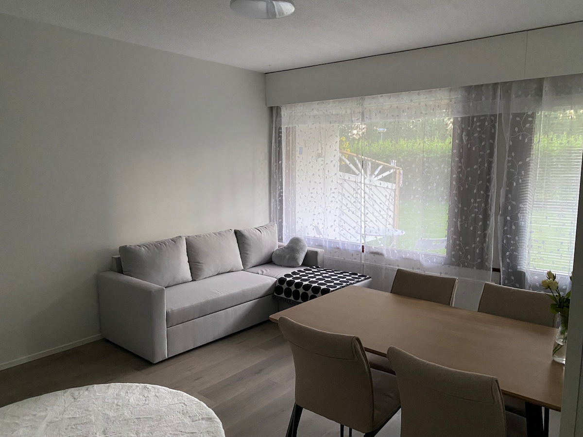 Townhouse komda qrib iċ-ċentru ta' Karstula f' żona kwieta. Teħtieġ iktar spazju għall-ġenealoġija? Jew forsi ftit privatezza ? Adattat għal familja, vjaġġatur waħdu,ħbieb jew koppja. Ħwienet fiċ-ċentru tal-belt ftit minuti bil-karozza jew mixi madwar 10-15-il minuta (1.5km). Tista' tgħum fil-bitħa tal-appartament jew fil-bajja pubblika ta' 200 metru. Inżul ix-xemx mit-tieqa tiegħek stess. Ideali !