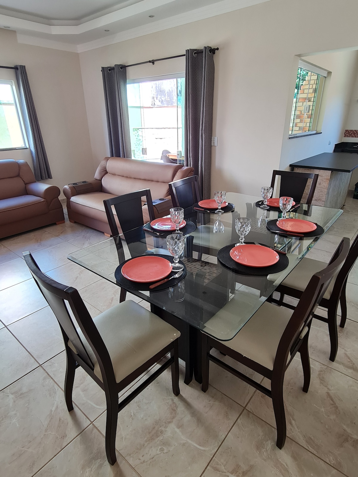 IMPORTANTE ! O valor por noite é válido para 8 hóspedes. A conferir : Casa ampla, de frente para o mar, com ótima iluminação e ventilação natural. Ampla sala de estar com mezzanino, integrados com cozinha americana completa e sala de jantar. Quatro dormitórios, sendo um suite, 2 banheiros internos, os quais atendem a outros 3 dormitórios. Jardim interno amplo com churrasqueira e garagens, coberta e descoberta, para 5 veículos. Jardim frontal com vista plena e acesso para a praia.