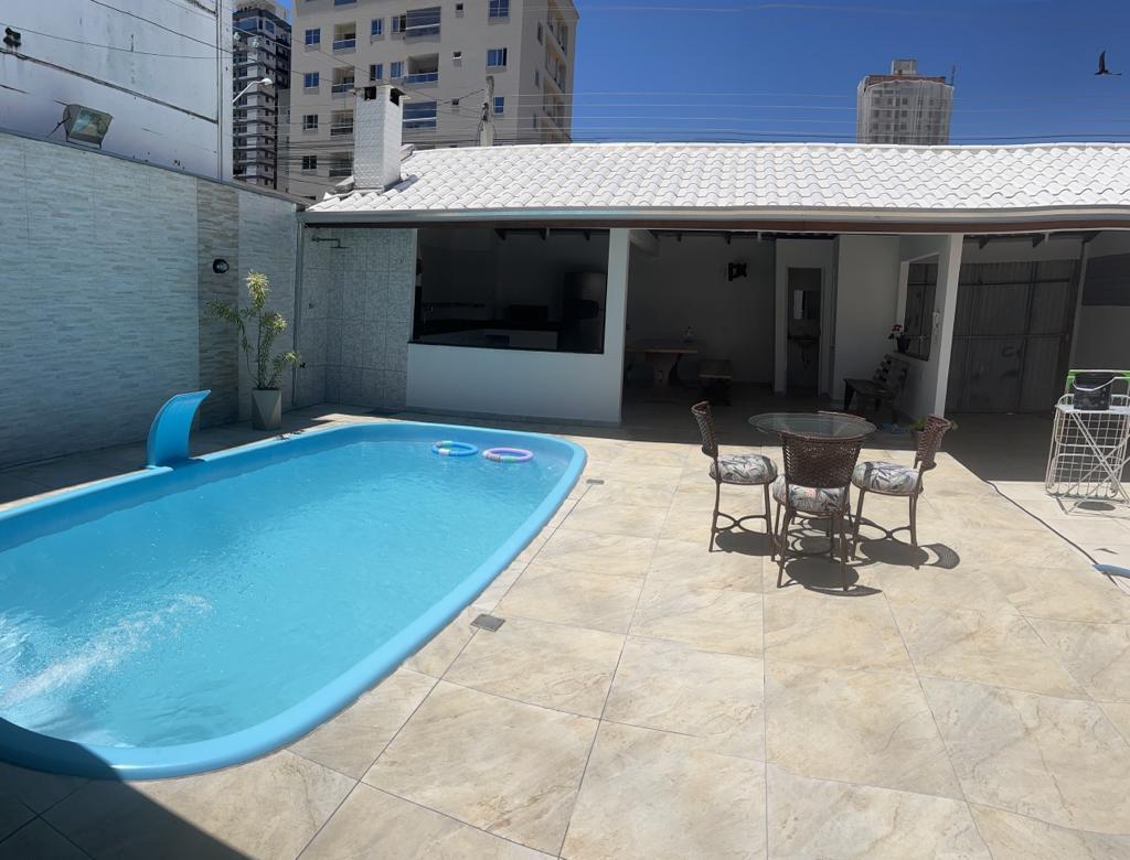 ótima localização, pelas proximidades encontra-se padaria, mercado, farmácia, Havan, e fica a 500m da praia. A casa possuí: - Piscina; - 3 quartos sendo 1 suíte; - Ar condicionado em dois quartos e 1 com ventilador; - Maquina de lavar, fogão e todos os utensílios de cozinha; - 3 banheiros; - Dois quartos possuem tv; - Sala de estar; - Área de lazer com churrasqueira elétrica e cozinha; - Vagas de garagem para até 5 carros; - Wifi; - Portão eletrônico e cerca elétrica.