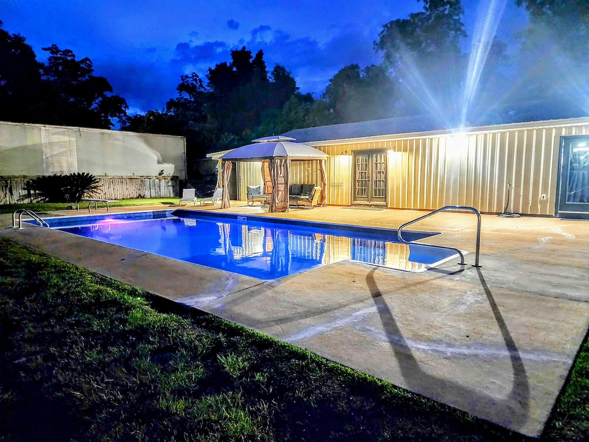 Il-Lodge hija razzett tal-kunċett miftuħ sabiħ fuq 16-il ettaru kwiet b 'għadira u mergħat. Bitħa ta 'quddiem magħluqa għal tfal żgħar u pets. Suite b 'sodda King Primarja Suite ta 'Sodda Doppja Doppja Sekondarja Kebbeb madwar il-porch bil-gradi. Wifi b 'veloċità għolja f' kull parti Kċina gourmet bi gżira ta '11-il pied, duel, kollha b' veduti sbieħ tal-għadira u nżul ix-xemx mill-kċina. Firepit bi nżul ix-xemx sabiħ. Aċċess ħafif għall-Università ta' Troy u Troy filwaqt li għadek barra fil-pajjiż.l