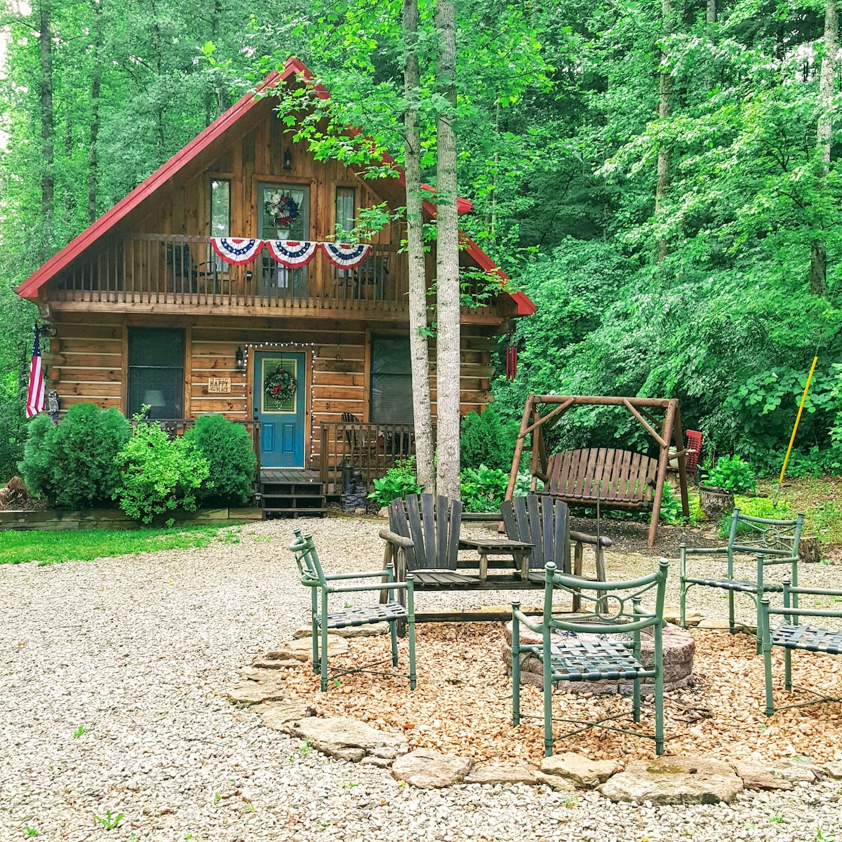 Il-kabina tal-logo tagħna ta '2 sulari (madwar 1,700 pied kwadru) tipprovdi ħafna xarbiet fuq barra b' portiku ta 'quddiem spazjuż u gverta ta' wara b 'grill tal-gass/faħam doppju, gallarija, bandla tal-injam, u firepit b' ħafna injam maqtugħ. Hija tinsab f 'holler privat fuq 105 ejker tul it-tarf tal-Foresta Nazzjonali ta' Daniel Boone. Id-dekor rustiku-chic ġewwa jgħaqqad għamara antika, pannell tal-injam tal-barn, dawl uniku, fuklar tal-elettriku, u banju bis-saqajn fost konvenjenzi moderni.