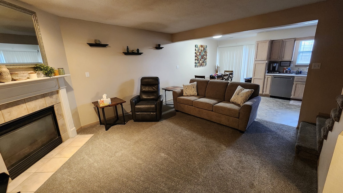 Our cozy townhome is 2 bedroom 2.5 bathroom with about 1200 square feet. We replaced the sofa sleeper 12/6/2025 for the comfort of your extra guest. We are located a few blocks off I-70 and can be at most area attractions, shopping and dining in less than 30 minutes. Kauffman & Arrowhead Stadiums (16 miles 18 minutes) Cable Dahmer Arena (9.6 miles 14 minutes) Sprint Center (23 miles 23 minutes) KC Zoo & Starlight Theatre (24 miles 27 minutes) Worlds of Fun (26 miles 28 minutes)