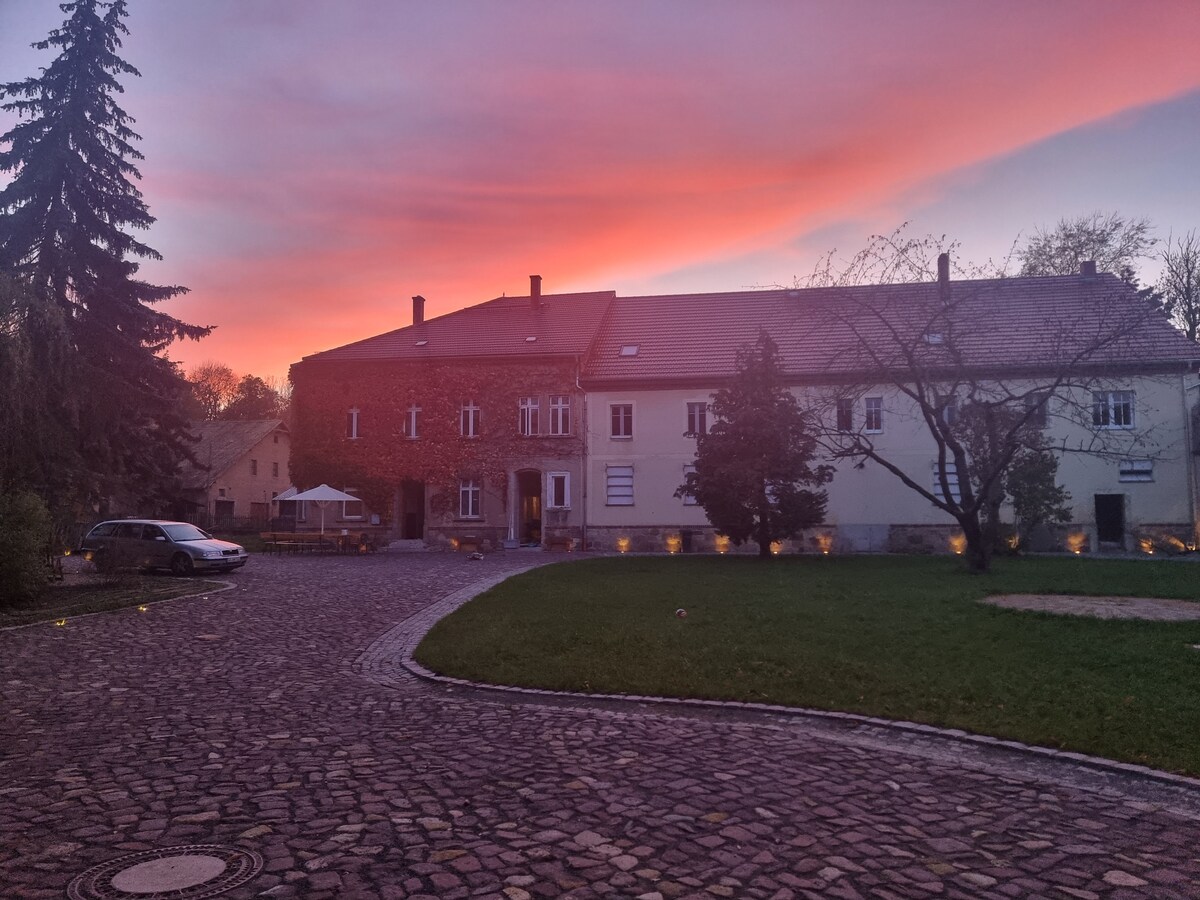 Irrilassa mal-familja kollha f' din l-akkomodazzjoni idillika f' nofs in-natura. L-appartament jinsab fil-kċina tal-bini residenzjali ta' Vierseithof rinnovat b' imħabba. Ir-razzett huwa mmaniġġjat b 'mod organiku. Hija abitata minn diversi ġenerazzjonijiet Hemm nagħaġ, tiġieġ u ħamiem fir-razzett. Ir-razzett maqtugħ jinsab bejn Leipzig, Dresden u Chemnitz.
