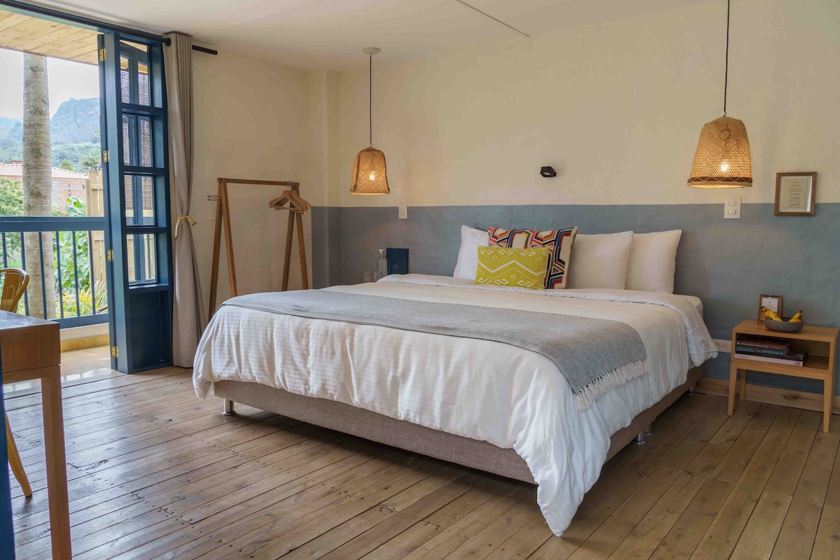Habitación con cama King y balcón con vista