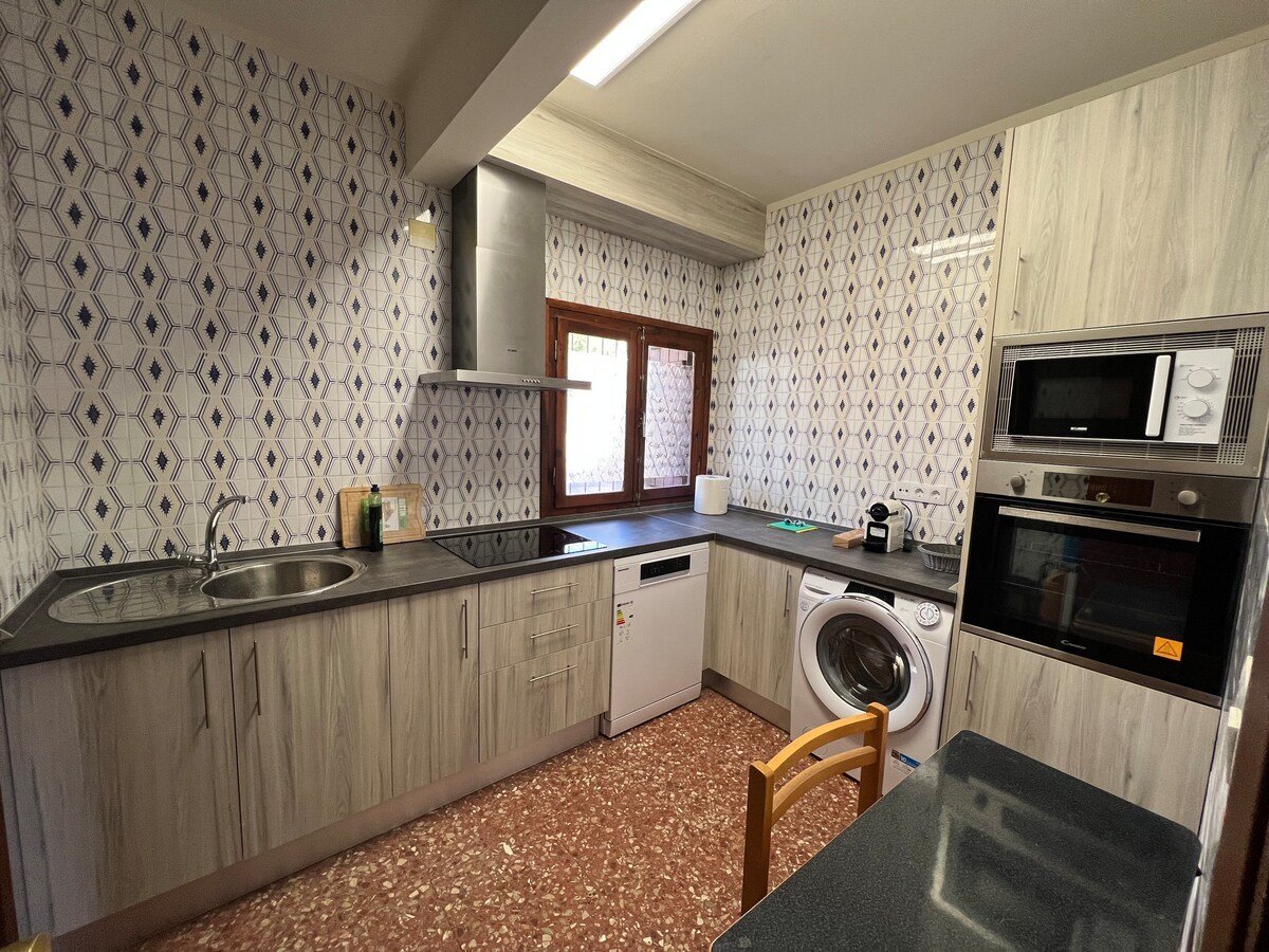 Appartament sabiħ bi 3 terrazzini kbar f'dar privata b'żewġ sulari. Żona ta' divertiment b'pixxina privata. Hot tub privat imsaħħan. Veduti mill-isbaħ tal-kastell antiku tat-Templari, tal-Park Naturali Sierra de Irta u tad-Delta tax-Xmara Ebro. Importanti għalina li l-vaganza jew il-ħin liberu tiegħek ikunu speċjali. Ir-ritratti jitkellmu għalihom infushom. Il-bajja tinsab 2 km bogħod bil-karozza. L-appartament huwa mgħammar tajjeb ħafna u għandu sistema ta' allarm u servizz tal-ilma b'xejn. Jekk jogħġbok ikkuntattjana dwar il-pets.