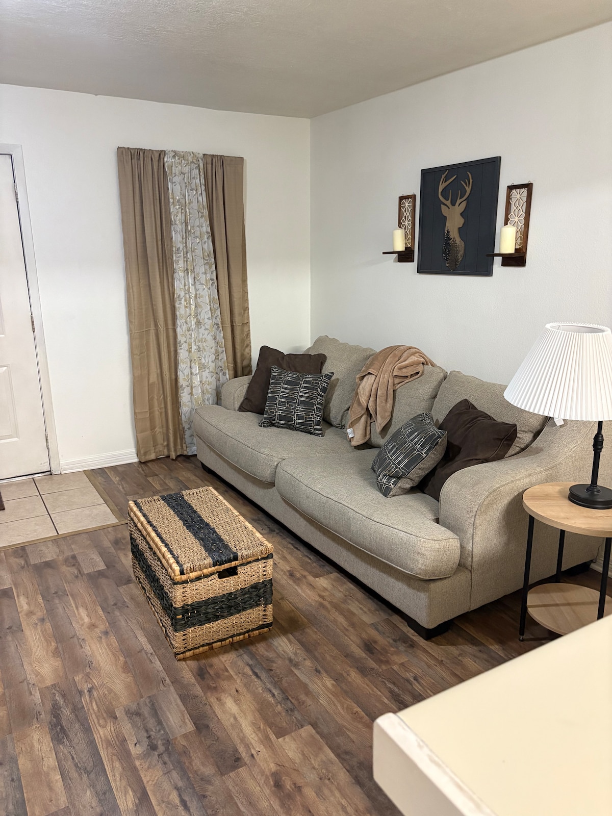 Appartament ġdid immudellat mill-ġdid u komdu bl-għamara l-ġdida kollha. Il-host jgħix fil-post hawn taħt. Gawdi l-paċi u l-kalma b 'dak kollu li għandek bżonn. Magna tal-Kafè, Friġġ Sħiħ b 'magna tas-silġ, kċina sħiħa b' bar top u ppurgar. Loveseat u siġġu b 'Smart TV + Wifi Kamra tas-sodda waħda b 'Sodda Queen Size, armarju, komodina u TV b' purtieri tal-qtugħ. Kamra tal-banju kompluta b 'doċċa li toqgħod bilwieqfa fuqha. Xugamani pprovduti. Magna tal-ħasil u Dryer disponibbli fin-naħa t 'isfel. Kamera ta 'barra fil-propjetà ***L-ebda parties, tipjip jew annimali domestiċi***