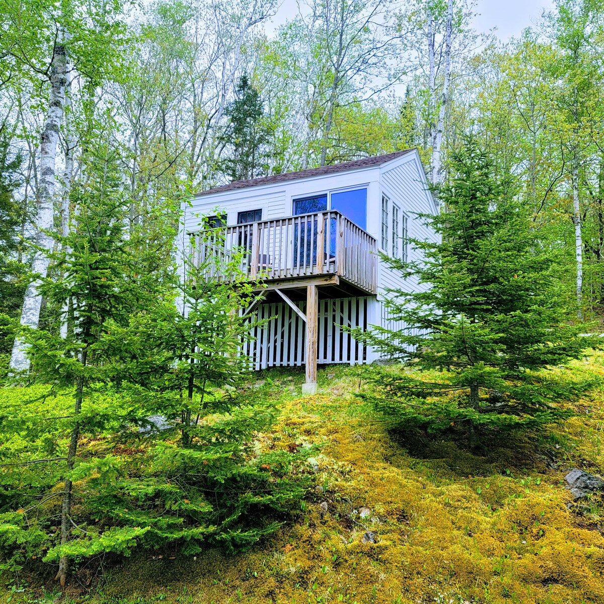 Il-Kabina Birch Hill tinsab fuq in-naħa ta' għolja, imdawra bi kważi 8 ettari ta' boskijiet. Il-kabina hija 288 pied kwadru, u l-kamra tal-banju hija maqtugħa u tinsab madwar 20 pied 'il bogħod mill-kabina. Hot tub jinsab komdu 'l barra mill-gverta għal rilassament aħħari! Din il-kabina tinsab 'il bogħod, imdawra bin-natura! Imma jinsab ukoll komdu għal tant postijiet mill-isbaħ ġewwa Midcoast! Ejja gawdi l-paċi u l-kwiet, fejn tista' tistrieħ u terġa' tistrieħ!