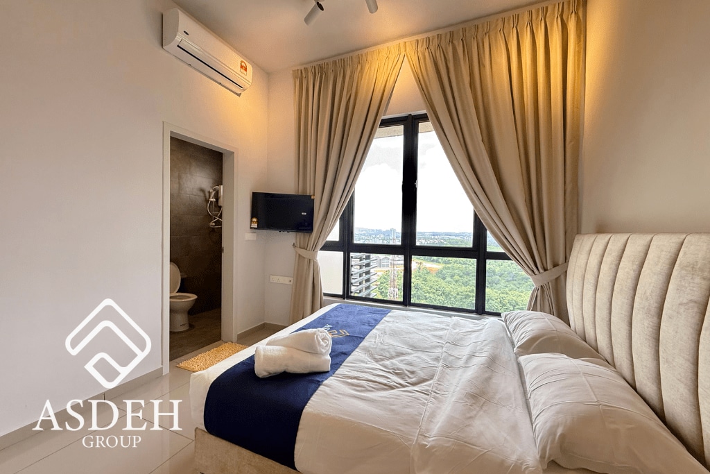 High floor spacious 1097 sqft 3 bedroom condominium with 4 aircon, 2 bathroom with water heater and 100 MBps unlimited high speed internet. -Cooking Hob, Hood and Utensil -Fridge -Microwave -Kettle -Hair Dryer -Full Height Wardrobe -Island Bar -Television -Iron and Board -Free Parking 20 minutes to IOI City Mall, 12 minutes to MRT Sg Jernih 16 minutes to MRT Kajang 20 minutes to UKM, Bangi 20 minutes to UPM Serdang 17 minutes to Uniten 15 minutes to Nottingham Univ 15 minutes to Broga Hills