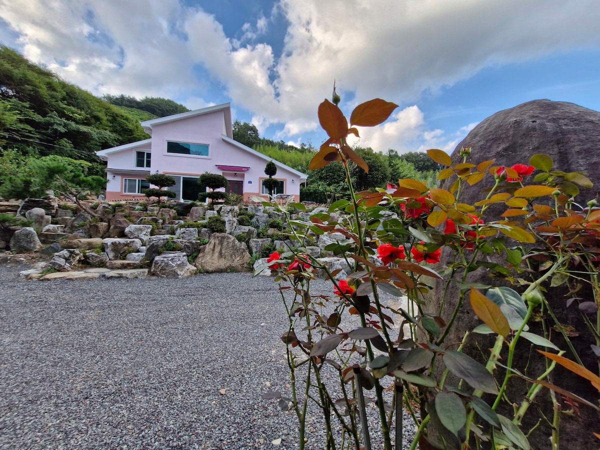 Aħna niftħu l-akkomodazzjoni bit-tama li jkun ftit ħin biex tkun kuntent/a u fejqan. Għal tim wieħed biss, id-dar tat-tafal aħmar forma ta' faqqiegħ mibnija direttament fuq l-art ta' 600 pyeong hija bħal dar ġdida li ssewwiet dan l-aħħar twieqi, art, ħitan, eċċ., u l-art u l-ħitan huma lacquered b' lożor wieħed u wallpaper ta' Hanji, sabiex tkun tista' tara l-inċerità ta' idejn is-sid u l-kisi. Permezz tat-tieqa tas-salott, tista 'tara veduta mill-isbaħ tal-Foresta ta' Pyeongsa u l-għoljiet ta' Goobong Peak, u hija akkomodazzjoni kwieta li tinsab' il bogħod mir-raħal, għalhekk hija pensjoni rurali fejn tista 'tistrieħ bil-kwiet. Hija akkomodazzjoni privata privata għal tim wieħed kuljum. Hemm wied żgħir fl-akkomodazzjoni li jista' jintuża biss mill-klijenti. Huwa jinsab qrib Choi Champandak, għalhekk huwa tajjeb biex tiskopri Choi Champan House u Dongjeong Lake, u hemm Hwagansimri Cherry Blossom Road u Gwangyang Plum Village fi żmien 20 minuta bil-karozza, u Piagol Valley 20 minuta 'l bogħod, għalhekk huwa perfett għall-ivvjaġġar. Għall-istruzzjonijiet lejn l-akkomodazzjoni, se nibagħtulek id-direzzjonijiet separatament b' messaġġ qabel iċ-checkin, għalhekk jekk jogħġbok żomm f' moħħok.