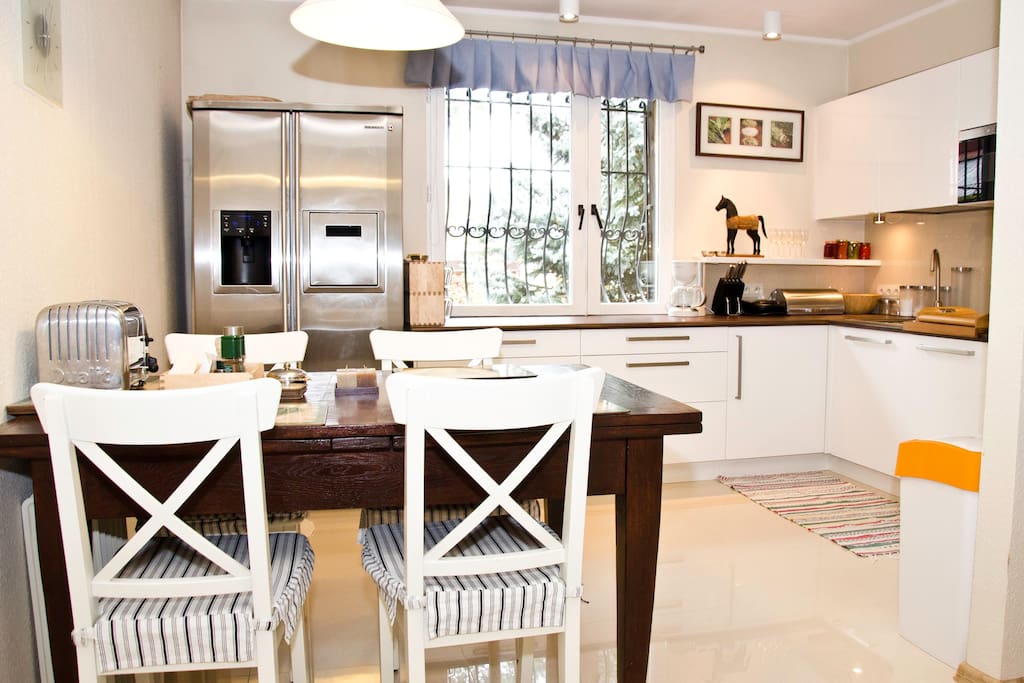 Dar fis-subborgi ta' Varsavja f' ġnien kbir. Hemm pixxina privata fuq barra fil-post. Kwiet u aħdar. Aċċess tajjeb ħafna għaċ-ċentru ta' Varsavja. 30 minuta bil-karozza jew bil-ferrovija. Internet ta' 600 Mbps. Parkeġġ fil-post . Pixxina, veranda tal-pixxina, terrazzin tad-dar. Xugamani u bjankerija tas-sodda. Plażma kbira, TV bis-satellita. 4 kmamar, żewġ kmamar tal-banju, waħda b' banju, l-oħra b' doċċa, kċina mgħammra sew. is-sular t' isfel u l-ewwel sular. Il-familja tiegħi tgħix fin-nofs l-ieħor tad-dar nofsha maqtugħa.
