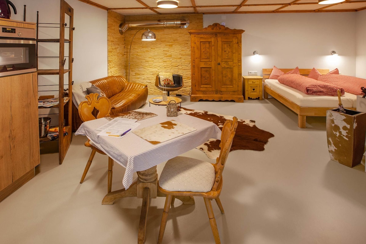 Fl-appartament tagħna Hase se ssib spazju għal 2 persuni fiż-żona tal-irqad li tgħix fl-ikel. Jekk trid, tista' tqiegħed sodda tal-ivvjaġġar għat-trabi. Tippreferi torqod fil-kamra tiegħek stess jew tasal ma' aktar minn 2 adulti? Tiddejjaqx tħares lejn il-volpi tagħna - l-appartament l-ieħor tagħna. B' kamra tal-banju spazjuża u gallarija b' veduti mill-isbaħ tal-muntanji, tista' tirrilassa.