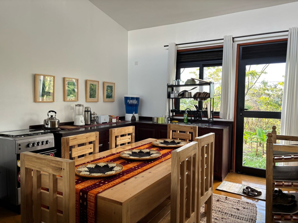 Gawdi dan il-post impressjonanti, b 'veduti inkredibbli fuq il-Lag Kerere u l-Park Nazzjonali ta' Kibale, bil-Muntanji Rwenzoris bħala l-veduta l-oħra tiegħek. Hemm 2 persunal full-time biex jgħin fil-ħasil tal-platti u t-tindif. Il-cottage tinsab fuq 27 ettaru ta 'art privata b' 800 metru ta' lawn fuq ix-xifer tal-lag tal-krater - kollha għalik innifsek. Huwa sewqan ta '45 minuta sal-punt tat-tluq tat-traċċar tax-xemx. Huwa post mill-aqwa biex tmur għal mixjiet, ġirjiet, rikbiet bir-roti u tgħum fil-lagi tal-krater.