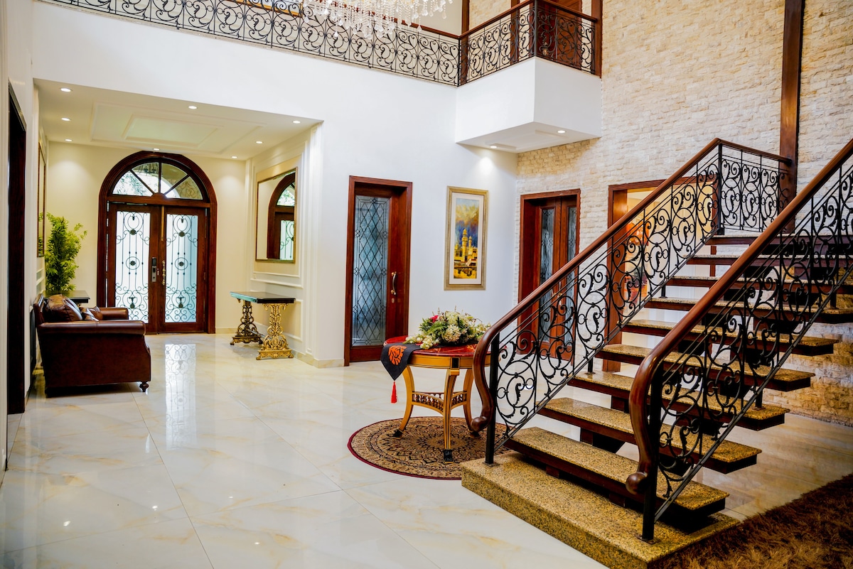 Post lussuż u kbir fejn toqgħod, li jinsab perfettament għal esperjenza ta' Lahore bla xkiel. Merħba fid-dar lussuża tiegħek 'il bogħod mid-dar, ideali għal familji kbar, gruppi tan-negozju, jew vjaġġaturi li qed ifittxu kumdità u konvenjenza qrib l-Ajruport Internazzjonali ta' Allama Iqbal (LHE). Din id-dar lussuża estensiva b' 5 ikmamar tas-sodda hija mfassla għal għajxien sofistikat, li toffri biżżejjed spazju u kumditajiet eleganti għal żjara mill-isbaħ ġewwa Lahore.