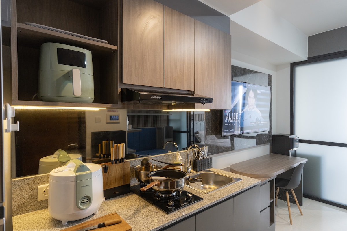 Located on the 22nd floor of Tower A, this studio was renovated in May 2025, featuring a fresh interior with WiFi and Netflix. The apartment is equipped with AC, a refrigerator, a kitchen set, and complete essential living amenities for your comfort. Building facilities include a gym, swimming pool, playground, and 24-hour security. #Suitable for 2 guests. For monthly rental, we will top up electricity with IDR 500,000. Welcome and feel at home 💕