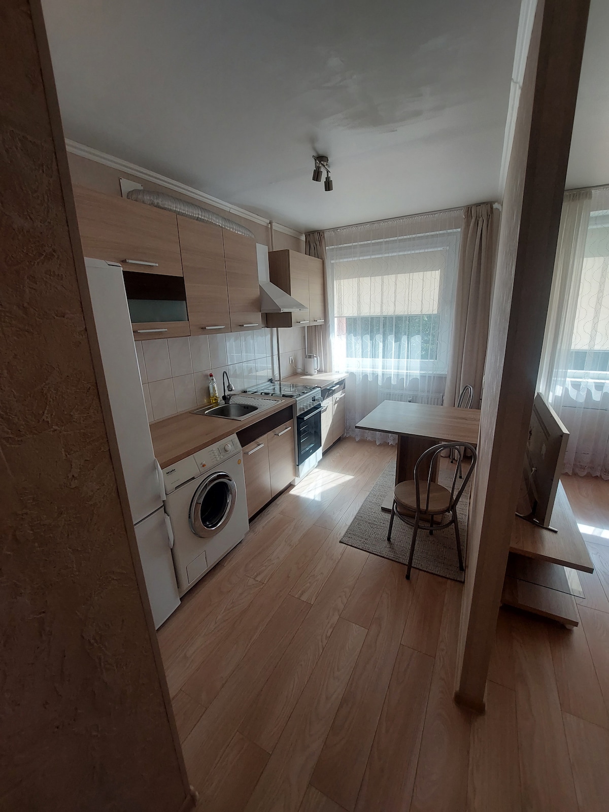 L-appartament għandu kamra tas-sodda 1 u salott 1 bi kċina. Huwa kompletament mgħammar, għandu Wi-fi veloċi ħafna, televiżjoni intelliġenti. Il-klijenti dejjem se jsibu ftit kafè u te. Parkeġġ privat mingħajr ħlas għall-parkeġġ pubbliku. L-appartament jinsab f 'post adattat ħafna; huwa ċ-ċentru tal-belt, iżda huwa pjuttost faċli biex tilħaq kwalunkwe post minnu. Id-dar hija mibnija mill-ġermaniżi fis-sena 1905. Diversi waqfiet tal-karozzi tal-linja huma fil-qrib, ħwienet ukoll jistgħu jintlaħqu b 'mixja ta' 5 minuti.