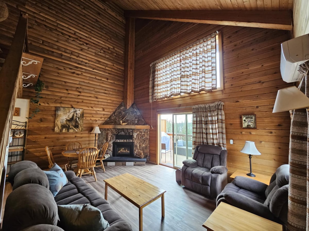 Kabina maħduma b 'mod artistiku ħdejn għadira żgħira fil-foresta. Qum sa dawl artab tal-foresta u għasafar tal-kant. Il-veranda magħluqa għandha twieqi kbar li jistgħu jinfetħu kompletament għal sens ta 'barra. Il-proprjetà hija max-xatt tal-għadira u l-klijenti għandhom aċċess għal lag żgħir mhux bil-mutur fejn jistgħu jaqdfu, jifflowtjaw u jgħumu. Il-propjetà tinsab 20 minuta 'l bogħod minn Sun Peaks, imdawra b' mogħdijiet għall-mixi, lagi, korsijiet tal-golf u ħafna attivitajiet fil-beraħ.