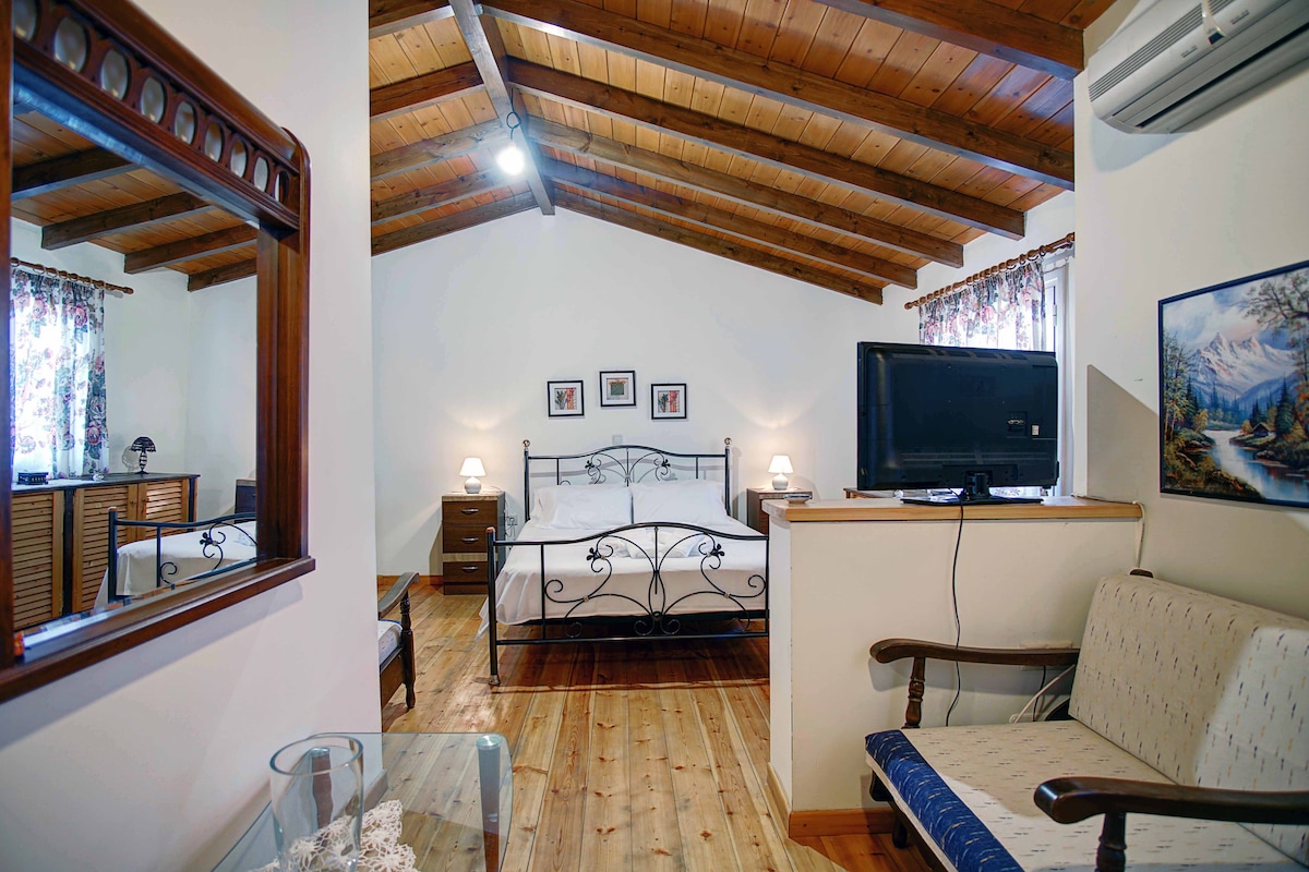 Dar ġdida fjamanta qalb in-natura, 10 minuti 'l bogħod mill-bajjiet impressjonanti ta' Paleokastritsa! Dan il-post fejn toqgħod b' kamra tas-sodda waħda kompletament rinnovat jinkludi sufan sodda komdu, kċina moderna b' dishwasher, forn u magna tal-kafè, terrazzin privat u parkeġġ privat. Ambjent paċifiku, 5 minuti sa supermarket, ristoranti fil-qrib. Ideali għal koppji jew familji żgħar li qed ifittxu li jirrilassaw u jiskopru s-sbuħija ta' Korfù!