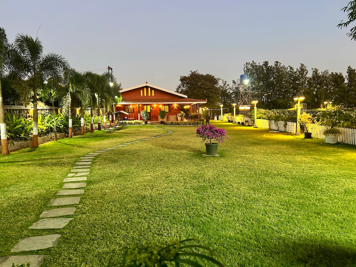 Din l-agrituriżmu eko-luxe b' 5 ikmamar tas-sodda hija l-aħjar ħarba qrib Nashik. Ftit iktar minn 30 minuta 'l bogħod mill-Fabbrika tal-Inbid ta' Chandon India u 40 minuta' l bogħod mill-Ajruport Internazzjonali ta' Nashik, id-dar għandha btieħi miftuħa, żewġ pixxini frizzanti, jacuzzi fuq barra (mhux imsaħħna) u veranda għolja b' veduti mill-isbaħ ta' art agrikola mimlija lussu. Qatta' l-jiem tiegħek tilgħab il-badminton, tmur bir-rota tul il-mogħdijiet tan-natura, jew tirrilassa fuq il-ħaxix espansiv ideali għall-yoga jew għall-mixi dgħajfin.