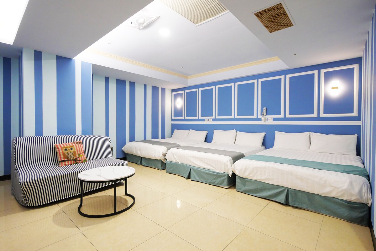 淺色基調的房間,動物世界的壁畫或橘色與藍色混搭的色調,溫馨的佈置,是我們認真的為旅人提供您在高雄最溫暖的家。 歡迎毛小孩入住,寵物另收費用一天300元/隻。 我們是合法旅館(八五亞太旅店 85 Asia Hotel 高雄市旅館登記 500號),給您最安心的住宿環境。 此房源提供一張雙人床或者一張雙人床+一張單人床兩種不同配置,依據訂房人數不同安排,最多三人使用。