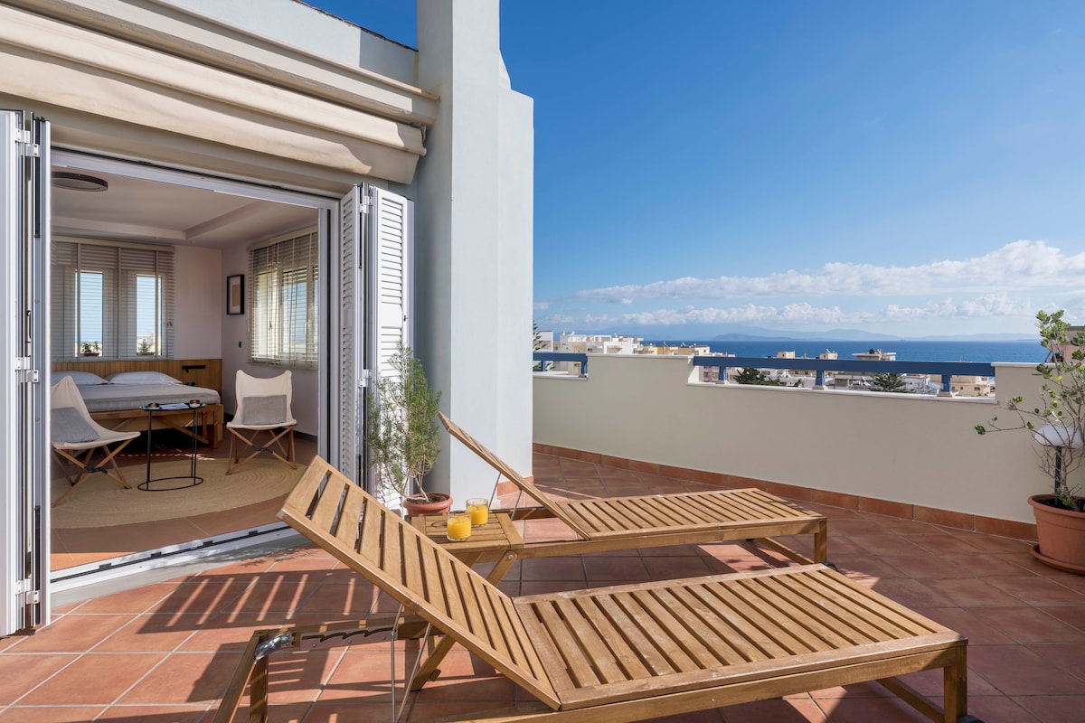 Ħarba privata fuq il-bejt fil-qalba tal-belt ta' Chios! Dan l-appartament modern ta' studio joffri żjara paċifika b' veduta panoramika mill-isbaħ tal-Baħar Eġew. Huwa prominenti? Terrazzin privat enormi b' siġġijiet tas-salott, mejda tal-ikel u veduti mill-isbaħ tal-baħar u t-tlugħ tax-xemx. Ideali għal vjaġġaturi waħedhom, koppji jew nomadi diġitali li qed ifittxu l-kumdità, il-kalma u l-konvenjenza – kollha kemm huma passi 'l bogħod mill-kafetteriji, mill-ħwienet u mill-port.